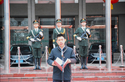 商学院党委书记钱程发表国旗下讲话。钱书记对学院青年学子提出三点希望:一是要厚植“中国心”,筑牢忠诚爱国之基;二是要树立“凌云志”,勇担时代发展之责;三是要锤炼“真本领”,书写青春奋斗华章,激励广大青年学子成为有理想、敢担当、能吃苦、肯奋斗的新时代青年。