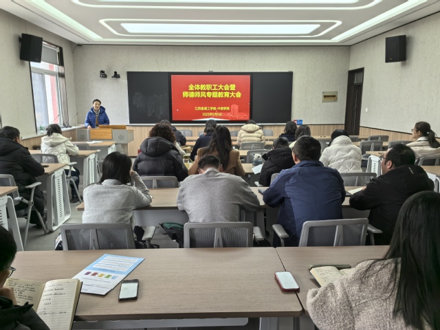 3月5日下午,江苏圣理工学院-中俄学院在514多功能教室开展全体教职工大会暨师德师风专题教育会议。会议由学院党委书记尹燕萍主持,全体教职工参加。