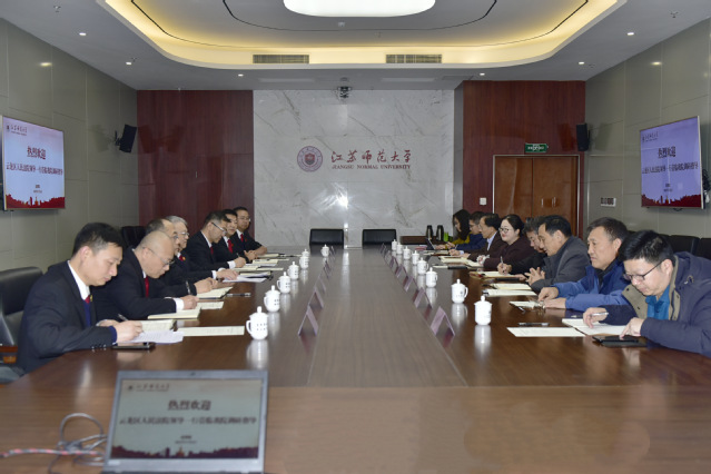 双方围绕“如何提升法学专业的实践能力和如何进一步加强院校协同合作”展开调研座谈。江苏师范大学法学院菅从进院长首先对云龙区人民法院潘荣凯院长一行的到来表示热烈的欢迎,然后对学院发展、毕业生就业、办学特色、涉外法治人才培养等方面内容做了简要介绍。他说,目前学院发展仍处于“爬坡”阶段,在学科发展、专业建设等方面面临着一定的压力与挑战。他对云龙区人民法院长期以来对我院学生实习实训、就业指导等方面的支持表示衷心的感谢。秉承“协同育人”办学理念,菅院长希望与云龙法院进一步在科研合作、人才培养、实习实训、实务课程共建、就业帮扶等方面协同开展深度合作,进一步提升卓越法治人才培养的质量。