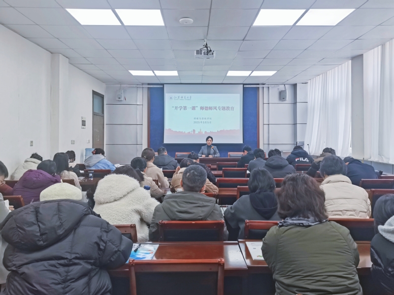 随后,杜昀带领全体教职工学习了《中共江苏师范大学委员会关于进一步压实师德师风建设主体责任的实施办法》,强调:一是压实师德师风建设主体责任,构建全员育人大格局,切实发挥各系支部、督导组、学生组织等基层组织的监督、反馈、整改作用;二是完善制度体系,强化师德师风建设的制度保障;三是加强教育引导,提升教师师德师风素养;四是强化监督考核,确保师德师风建设取得实效。杜昀指出,师德师风建设要立足大视野、大格局,聚焦教师执教能力的全面提升和教师队伍形象的积极塑造,为学院高质量发展提供坚实保障。