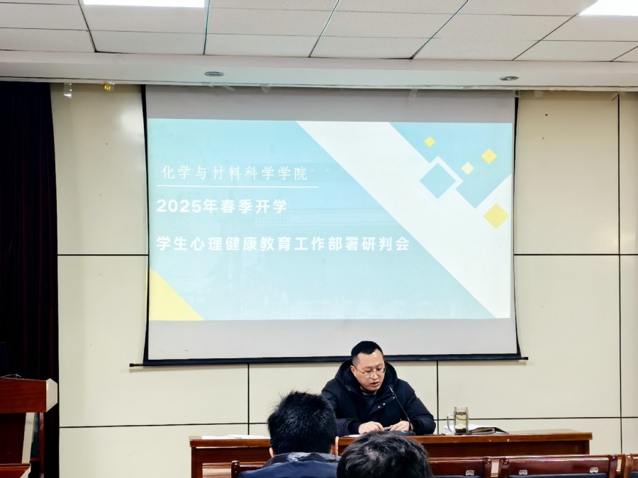 3月4日下午,化学与材料科学学院在化学楼211会议室召开新学期班主任工作会议暨学生心理健康教育工作部署研判会。会议分为三个阶段进行,围绕心理健康教育、升学就业、学生党团建设、教育管理、困难资助、评奖评优等多方面工作进行全面部署。会议由学院党委副书记赵玉璋主持,全体辅导员及班主任参加会议。