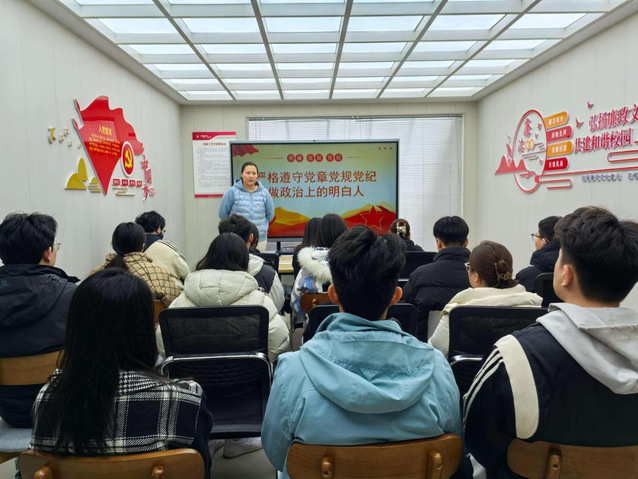 活动中,学生第二党支部书记张倩带领全体学生党员继续学习《中国共产党纪律处分条例》,结合高校学生违纪典型案例剖析遵守纪律的重要性,强调学生党员要在学风建设、社会实践等环节发挥先锋模范作用,并对学生党员在新学期提出“严守纪律底线、争当学生表率”的具体要求。