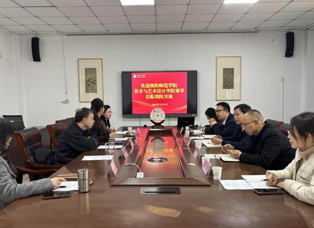 3月13日下午,南阳师范学院美术与艺术设计学院院长曹天成、副院长胡振江等一行五人到我院调研交流。我院院长惠剑、副院长兰芳出席座谈会,学院各系主任、教研室主任参会。