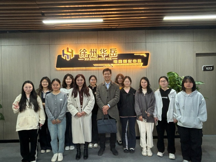 活动中,师生一行首先参观了徐州华岳直播基地的办公区、直播间、产品展示区等,详细了解直播电商的运营模式、发展现状及未来趋势。企业负责人详细介绍了公司发展历程、主营业务、未来规划及人才需求等情况,并分享了直播行业的最新动态和成功案例。