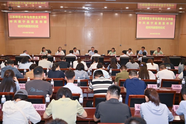 710日,马克思主义学院与中共睢宁县委宣传部结对共建签约仪式暨党史学习专题辅导报告会在睢宁县新时代文明实践中心举行。马克思主义学院党委书记薛深、党委副书记朱和卿、副院长靳书君和陈群志、学院党群口工作人员等参加活动。