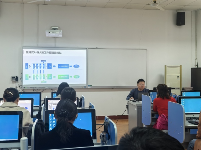 讲座上,胡永斌副教授以前沿视角系统阐释了生成式AI的新进展,简要介绍了豆包、腾讯元宝、DeepSeek等多种大模型,并结合高校教师的工作实际深入浅出地讲解演示人机交互的核心技术、生成式AI赋能高校的应用场景,生动展现了人机协同在提升工作效率与创新等有效应用。随后,胡永斌副教授与参会教师围绕深度学习办公、教学和科研等高等教育应用场景热点及方法作了交流研讨。