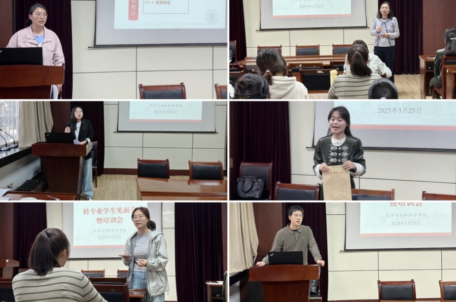为帮助转专业学生快速融入新环境,明确学习方向,3月25日,化学与材料科学学院召开转专业学生见面会暨培训会。学院党委副书记赵玉璋主持会议,学院教法教研室主任刘晓芹、教务老师夏建萍、实验室老师付荣、相关班主任、全体辅导员以及全体转入学生参加会议。
