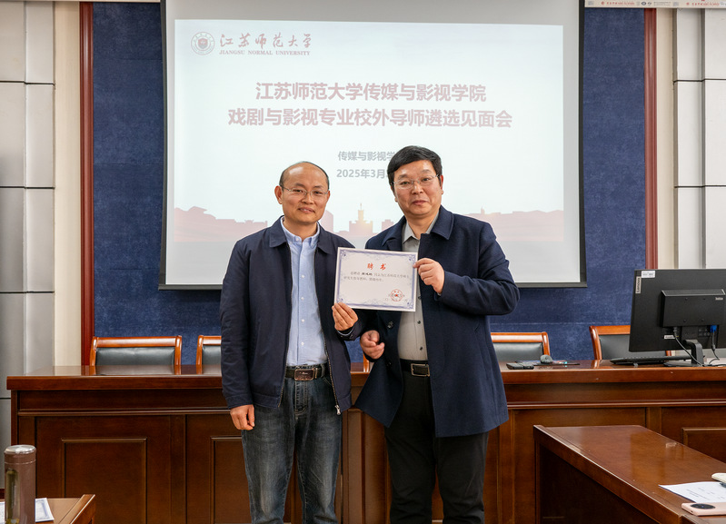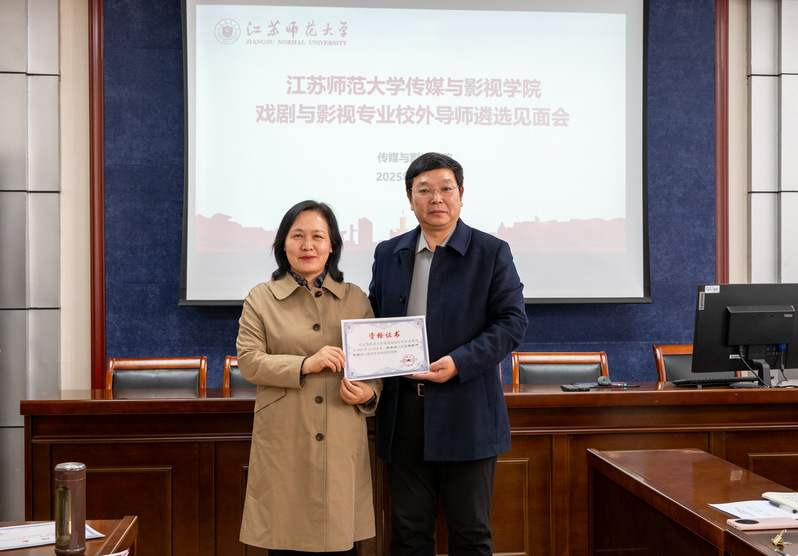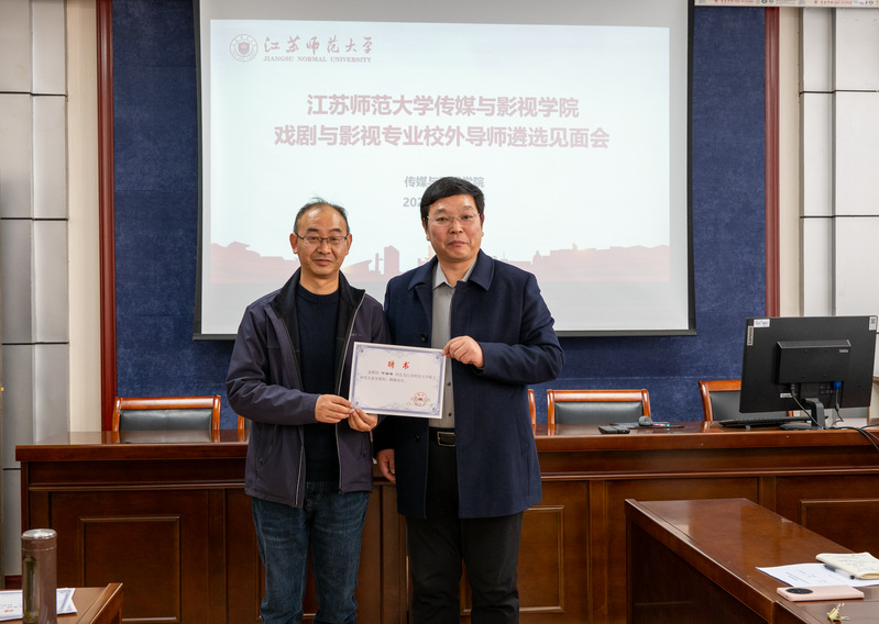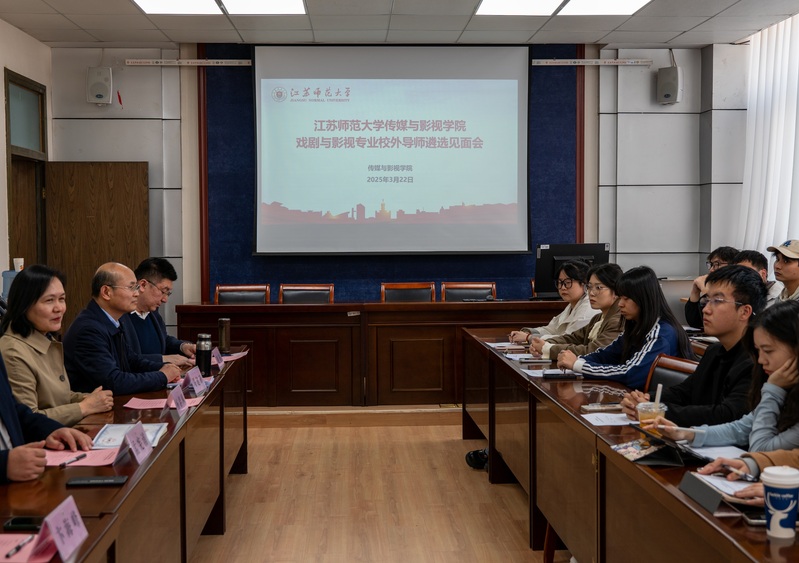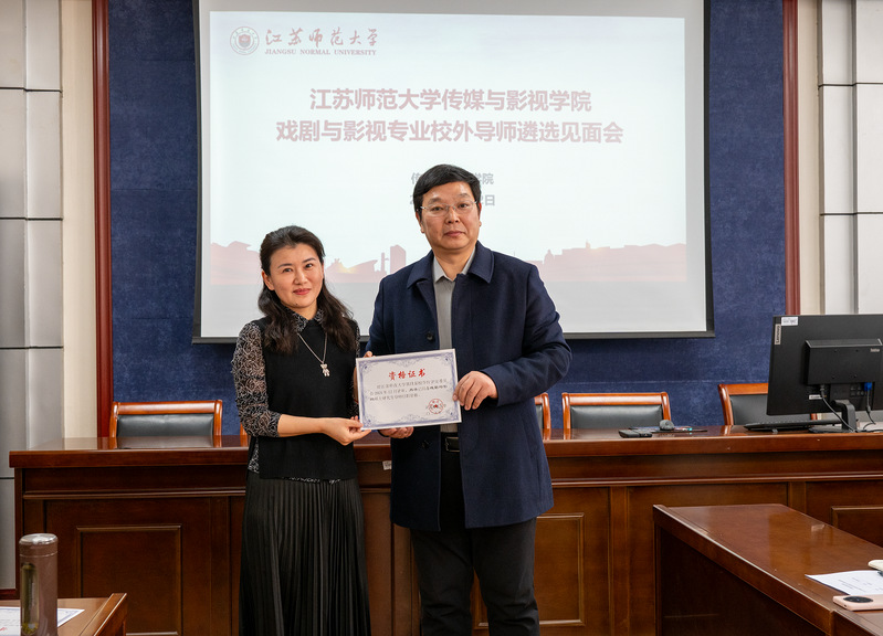 3月22日下午,传媒与影视学院在304报告厅举行戏剧与影视专业研究生业界(校外)导师遴选暨产教协同创新研讨会。商丘师范学院传媒学院杨春风院长、徐州广电传媒集团卞海峰副台长、宿迁广播电视总台纪录片工作室周建鹏主任、徐州广电传媒集团文艺影视中心肖冰主任、江苏龙行教育集团乔汉金董事长等多位省内外业界专家出席。
