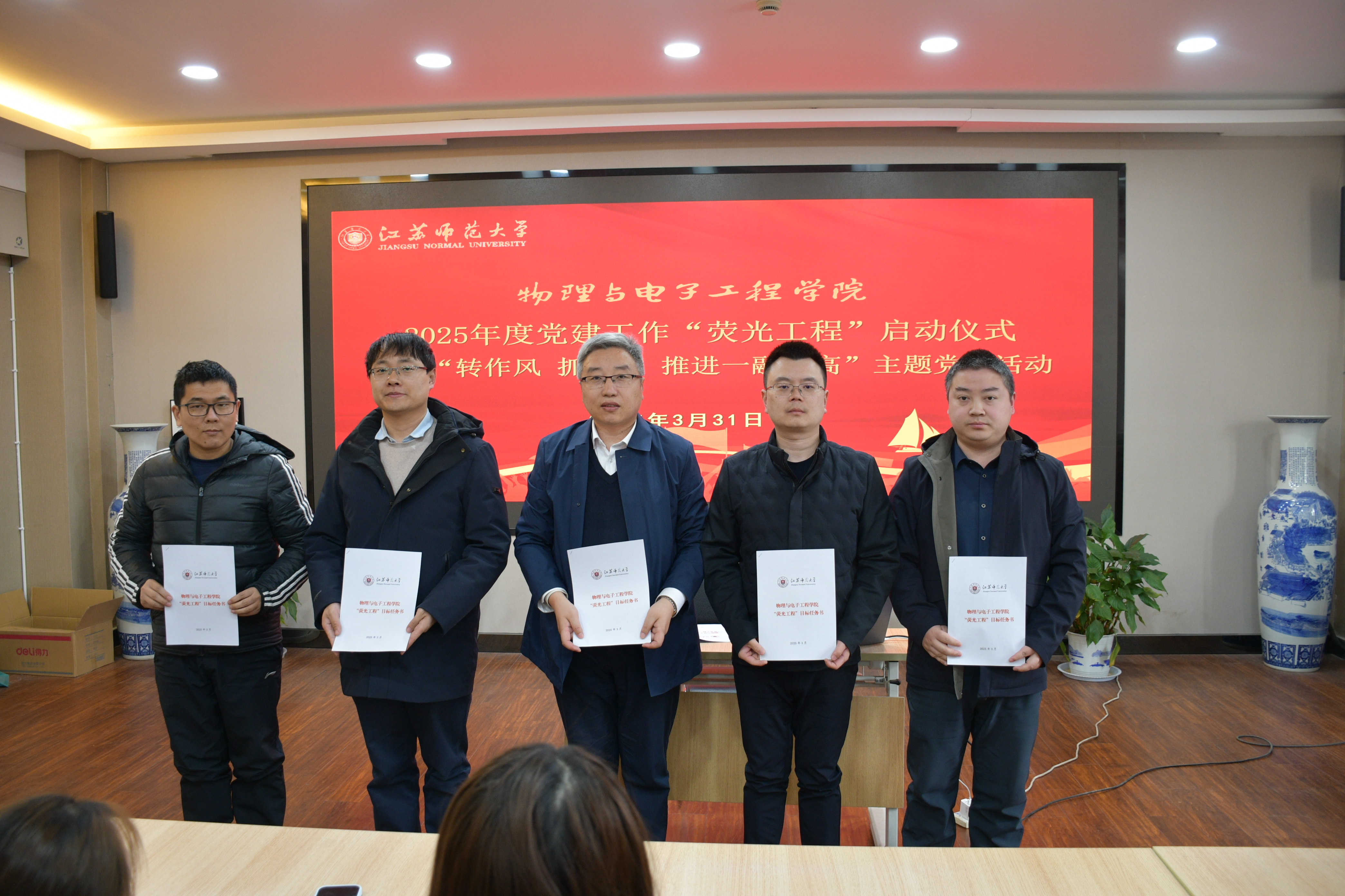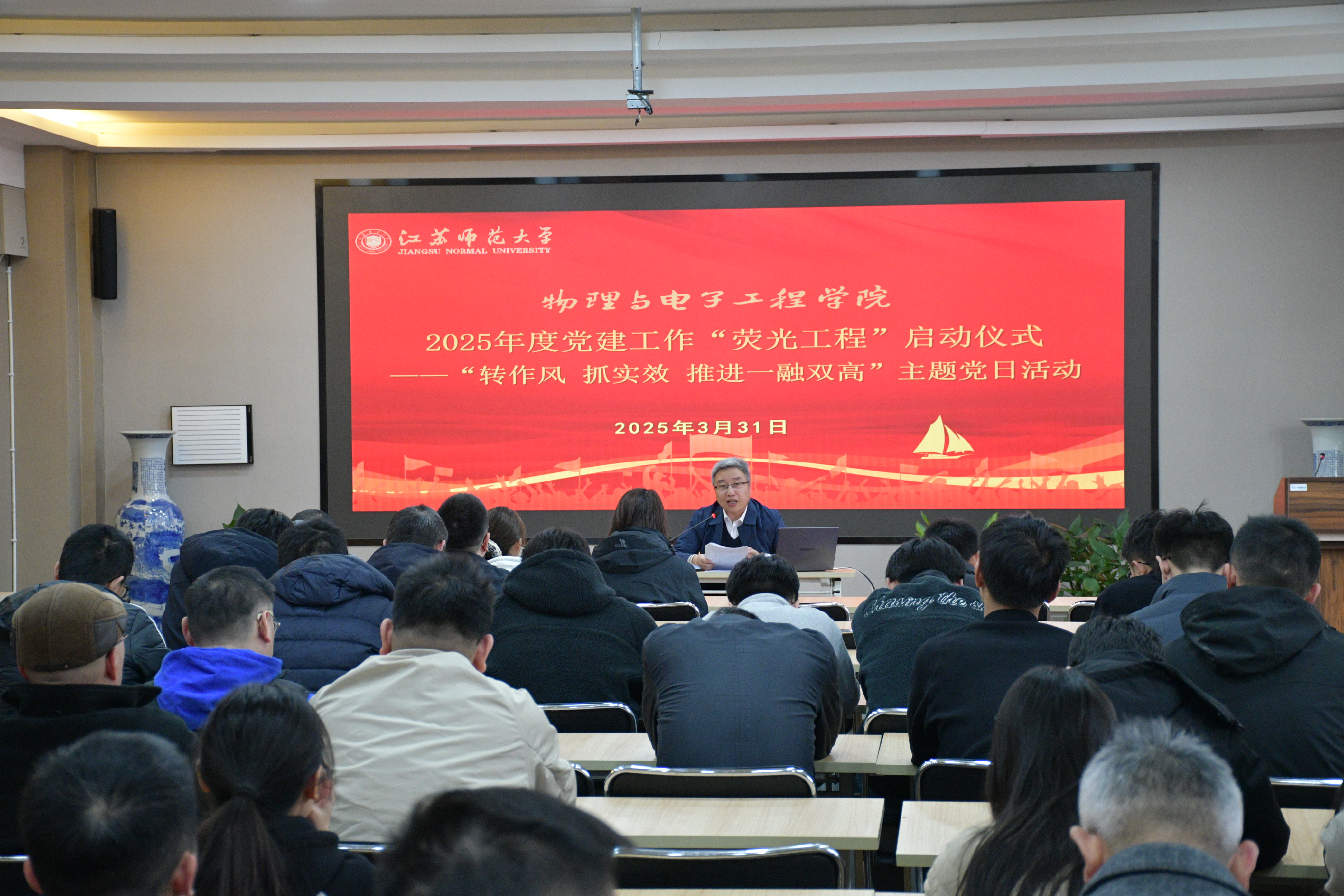 3月31日下午,物电学院举行“转作风,抓实效,推进‘一融双高’”主题党日活动暨2025年党建工作“荧光工程”启动仪式。全院师生党员参加会议。会议由院党委书记王夫寿主持。
