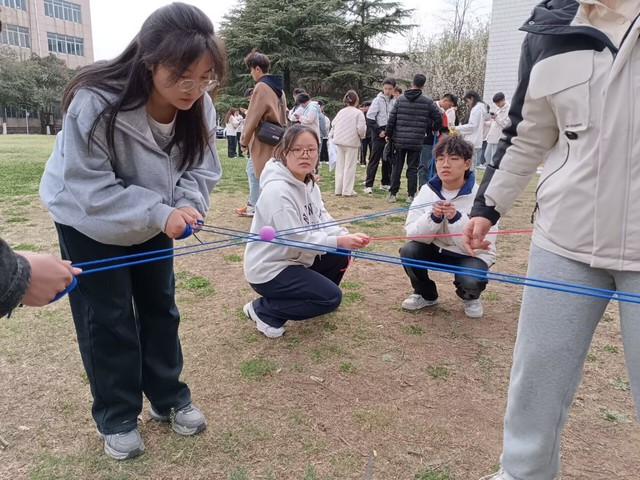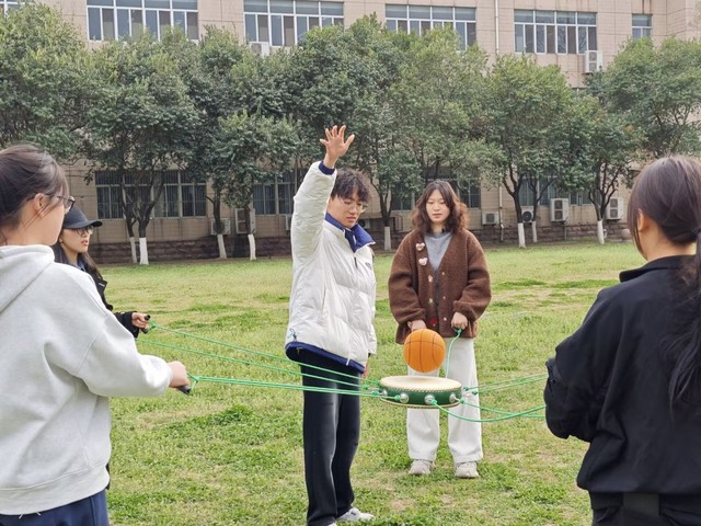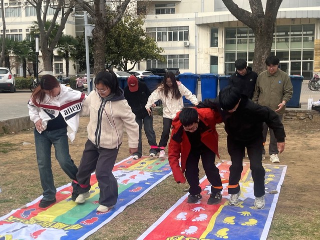 趣味运动活动第一个项目是“纵横天下”。该项目要求参赛同学互相配合,通过巧妙操控塑料球穿越重重障碍抵达终点,这一环节极大地考验了同学们的敏捷性与智慧,现场瞬间充满紧张而激烈的气氛。第二个项目是“手脚并用”,该活动着重考验团队成员之间的协调性与合作能力,同学们通过密切无间的配合,共同攻克难关,完成比赛任务,展现了机电学子团结拼搏精神。第三个项目是“光盘拔河”。现场气氛达到了高潮。同学们紧握弹簧绳,巧用身体力量,展开激烈角逐,比赛场面既激烈又井然有序,每一次的用力与呐喊都彰显着他们的决心与勇气。第四个项目是“同心击鼓”。该项目是对团队默契的极致考验。每个队伍的成员必须紧密配合,共同控制鼓面节奏,使球能够稳定跳动。他们朝着共同的目标奋勇前进,每一次成功的击鼓都凝聚着团队的智慧与力量。最后一项“不倒天下”,推动活动达到了新的沸点。该项目要求团队成员齐心协力,共同维持手中的塑料棒保持不倒状态。这不仅考验同学们的合作能力,更对他们的策略制定和智慧运用提出了更高要求。各参赛队伍在比赛中不断调整战术,展现出顽强的毅力、卓越的智慧和团结拼搏的精神风貌。