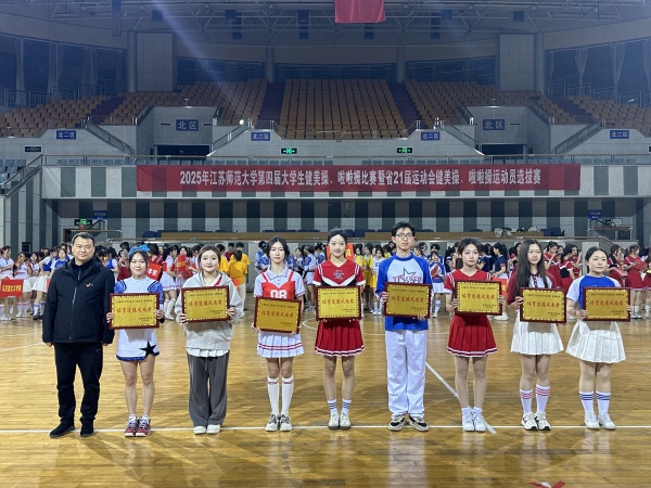 2025年4月1日,江苏师范大学第四届大学生健美操、啦啦操比赛暨江苏省二十一届运动会健美操、啦啦操校内运动员选拔赛在校体育中心圆满落下帷幕。此次比赛共有15支代表队的269名运动员参加,商学院学子凭借出色发挥,获得大众健美操第三名、体育道德风尚奖的好成绩。