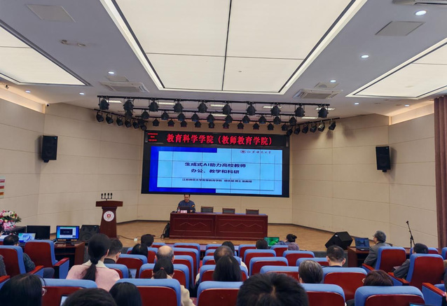 4月2日下午,教育科学学院特邀智慧教育学院胡永斌副教授在学院106报告厅开展题为“生成式人工智能助力高校教师办公、教学和科研”的专题讲座。学院全体教职工参与学习,陈鹏院长主持。