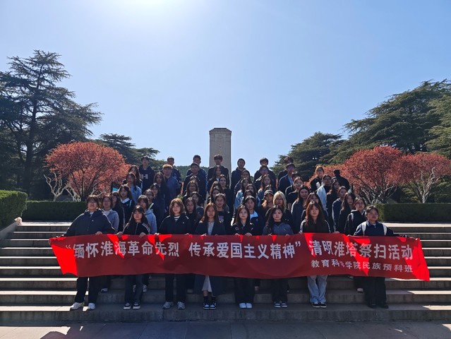 为深切缅怀革命先烈丰功伟绩,传承红色基因,教育科学学院组织2024级民族预科班学生前往淮海战役烈士纪念塔,举行“缅怀淮海革命先烈,弘扬爱国主义精神”主题公祭活动。本次活动由辅导员常蒙带队。