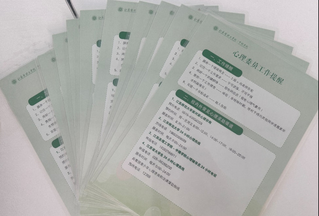 在辅导员、班主任走访宿舍过程中,发现部分宿舍未张贴心理求助渠道宣传单页。为给学生提供便捷、有效的心理支持途径,学院统一印制最新的《心理咨询服务小贴士》《心理委员工作提醒》《年度重点关注类型清单》,要求心理委员张贴在每间宿舍显眼处,并着重提醒同学们要积极利用有效途径解决个人困惑。