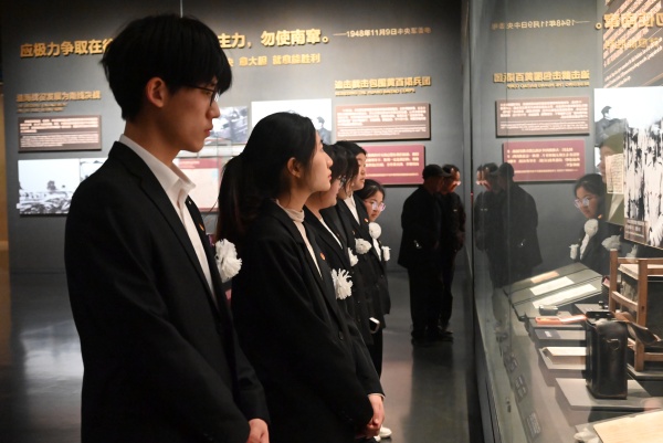 在庄严肃穆的纪念塔下,全体学生整齐肃立,低头默哀。微风轻拂,松柏静立,仿佛也在诉说对先烈的无尽追思。默哀毕,学生们怀着崇敬之心,前往国防园。园内陈列的各式武器装备,静静诉说着往昔峥嵘岁月,同学们驻足凝视,感受那段战火纷飞的历史,对国防力量的重要性有了更深刻的认识。随后,学生们步入淮海战役纪念馆。馆内珍贵的文物、详实的史料、逼真的场景复原,生动再现了淮海战役的宏大场面。大家认真聆听讲解,不时驻足观看,深刻领悟先烈们英勇无畏、无私奉献的精神。