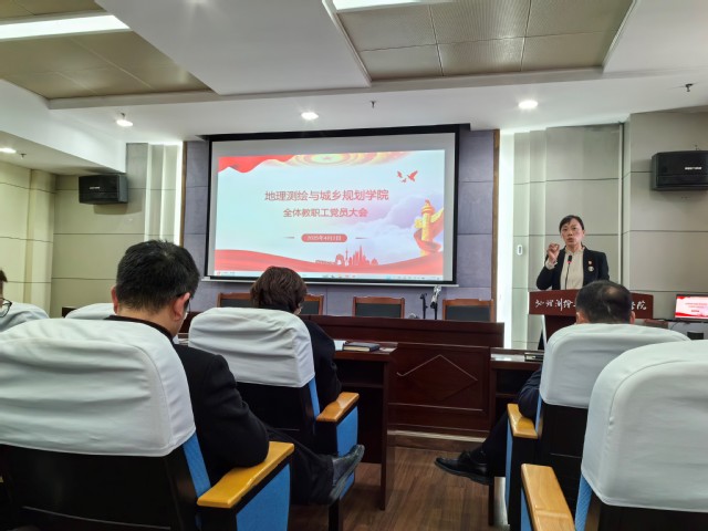 4月2日下午,地理测绘与城乡规划学院全体教职工大会在静远楼1307会议室召开,学院全体领导班子成员出席会议,全体教职工参加了会议。会议由院党委书记耿艳主持。