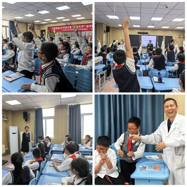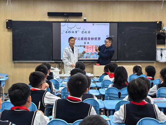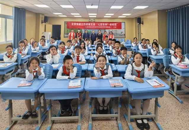 为弘扬科学精神、普及科学知识、厚植青少年科学素养,4月10日下午,化学与材料科学学院教工一支部赴铜山实验小学开展“全国党建工作样板支部进中小学校园”系列活动。学院党委书记吴晨、姜波教授、李团结教授和党员志愿者们为五年级50余名师生带来了一场“可触摸、可互动、可探索”的沉浸式科学课。