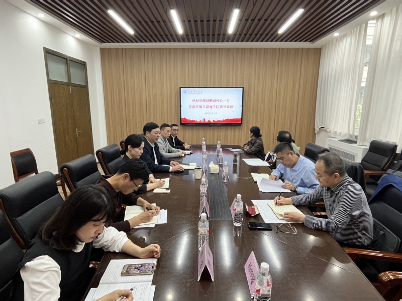 4月11日,校党委常委、副校长赵鹏带队赴传媒与影视学院开展人工智能时代专业优化调整专题调研。教务部部长兼教务处处长闫长春、教务处副处长满在江等陪同调研。传媒学院领导班子、各系主任参与座谈。