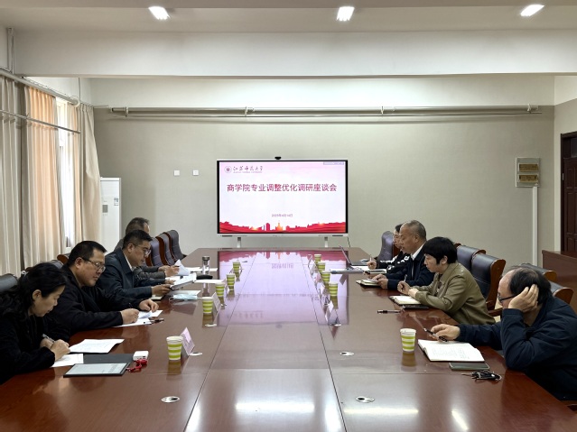 院长罗栋梁作专题汇报,介绍学院现有专业建设情况,汇报人工智能时代背景下学院专业改造升级的具体方案,并重点介绍学院对经济学、市场营销学等传统专业的升级与替代。学院拟通过探索数字化专业改革、师资培养、结合企业需求的智能转型等多项举措,推进专业体系结构性调整。