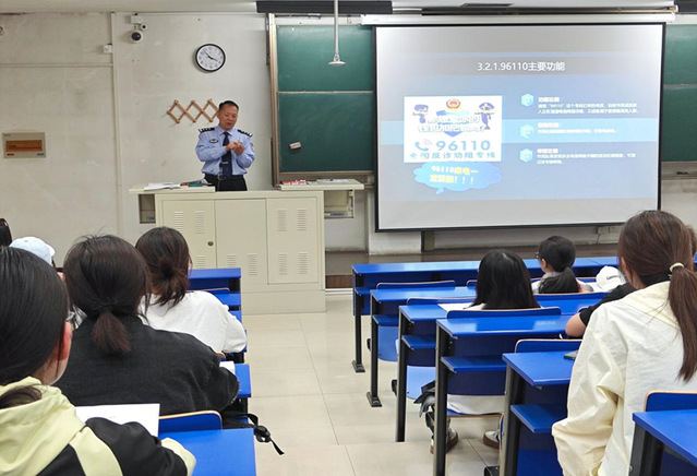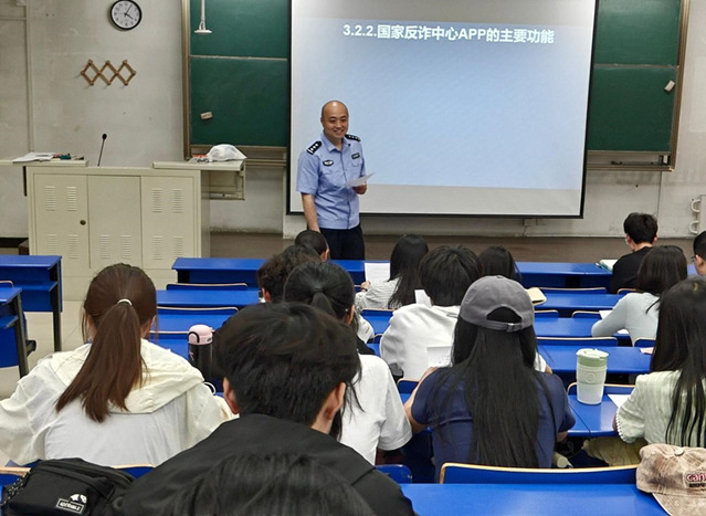 讲座中,刘警官根据师大发生的警情,对刷单返利诈骗、虚假色情服务、冒充电商物流客服类、网络游戏产品虚假交易类、冒充公检法类诈骗等诈骗行为进行分析,深入浅出地剖析了诈骗分子的作案手法,传授同学们识别和应对诈骗的技巧。随后,周警官结合自身经历,主讲了破案的困难,这些经历让同学们深刻认识到了反诈工作的艰巨性。