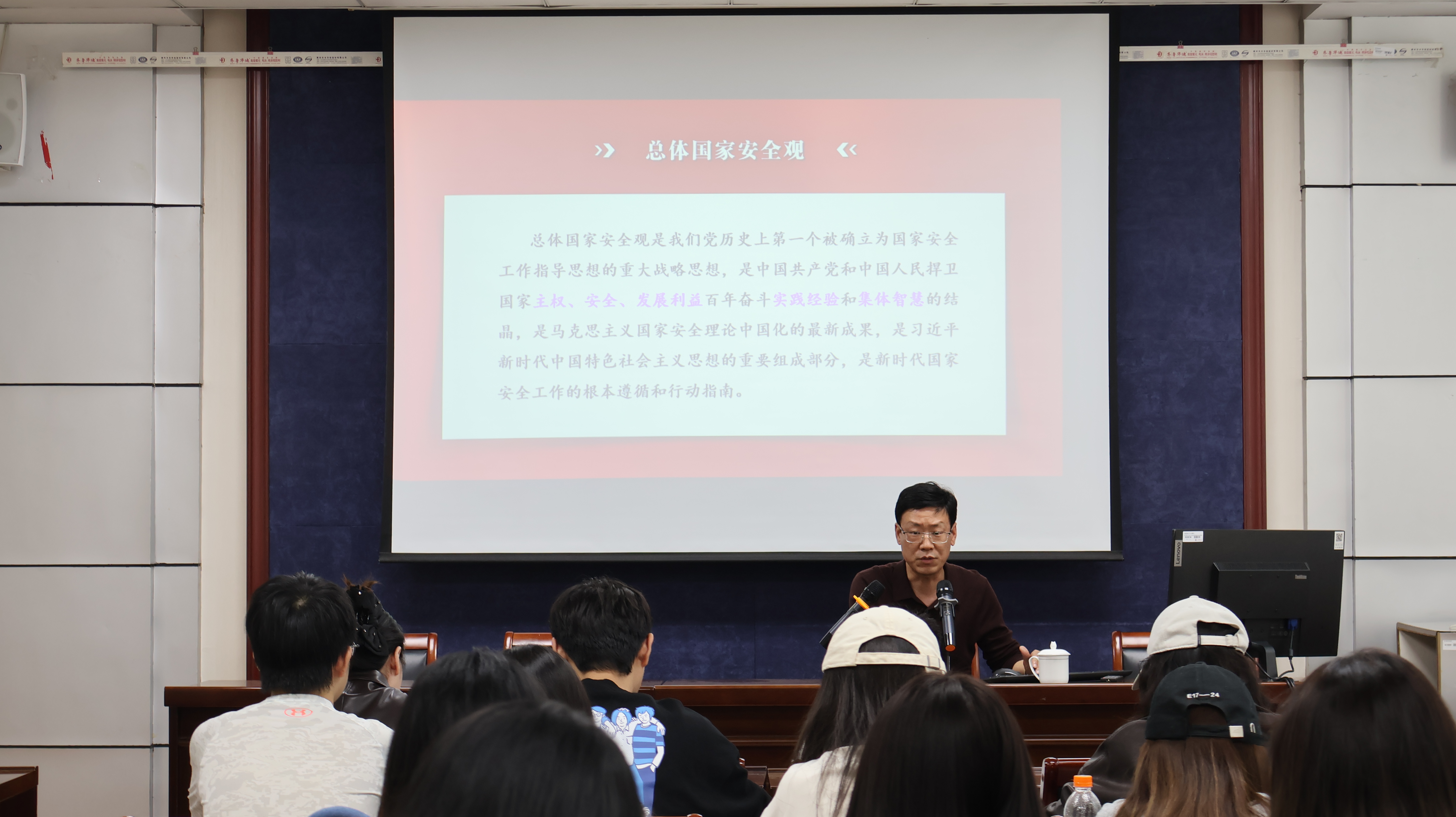张存钊随后讲解了总体国家安全观的内涵外延,总体国家安全观涵盖政治、文化、生态、国土、社会、太空、军事等十几个领域,需要做到统筹发展和安全、统筹开放和安全、统筹传统安全和非传统安全、统筹自身安全和共同安全、统筹维护国家安全和塑造国家安全等五个统筹。针对传媒与影视学院学生的专业特点,张存钊特别强调,同学们在外出摄影摄像拍摄过程中,一定要有边界意识,切不可随意进入禁拍区域进行拍摄作业。同时,张存钊提醒同学们要时刻警惕身边的间谍,增强安全防范意识,避免被间谍利用。