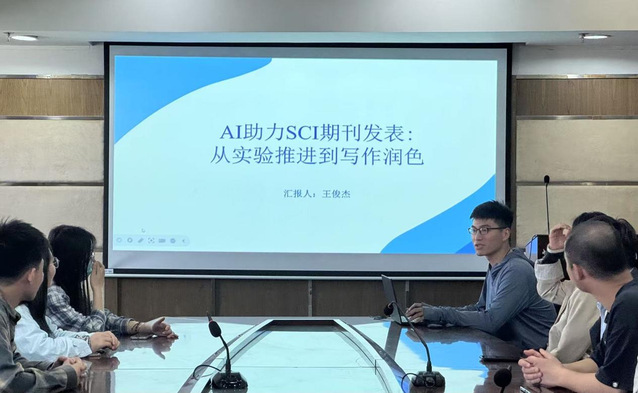 论坛特邀研究生党员王俊杰和徐润喆担任主讲。王俊杰同学以《AI助力SCI期刊发表:从实验推进到写作润色》为题,详细分享了AI助力深度学习和高质量期刊发表的经验。徐润喆同学以《从0到1:如何撰写一篇文献综述》为题,细致讲述了撰写文献综述的过程与方法,并提出自己的写作经验和看法。
