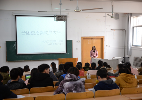 3月13日上午,2015级分团委招新动员大会在江苏师范大学贾汪校区西100如期举行。会议由分团委副书记喻秋主持,参加会议的为分团委各部门部长以及机电工程学院2015级班级部分学生。