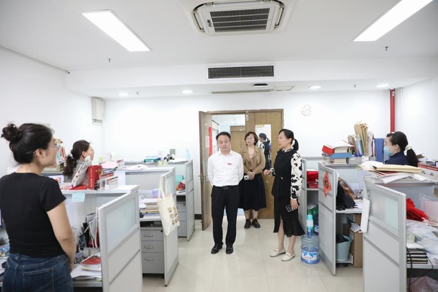 芮国强书记一行实地察看了学院办学空间和房产使用情况,详细了解学院在教学科研场地规划、资源配置等方面的实际状况。在行政及各系办公室,芮国强书记与老师们亲切交流,详细了解学院教学、管理情况,科研项目进展,人才培养成效以及学科建设特色等。