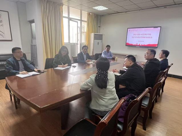 2025年4月24日下午,法学院行政领导班子就人才培养与学科建设等主题到宪法学与行政法学教研室进行调研座谈。座谈会在学院616会议室举行。法学院院长张峰振、副院长张兆成、副院长张杰与宪法学与行政法学教研室全体教师参加了本次会议。会议围绕人才培养模式、师资队伍建设、科研方向凝练、培养方案完善等重点议题展开深入研讨,进一步明确了教研室未来发展的重点方向和核心举措。