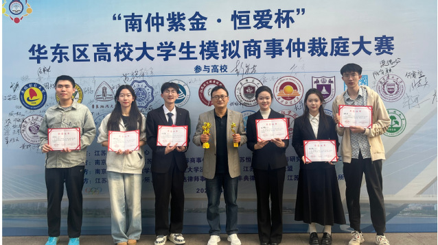 2025年4月26日,由江苏省法律援助中心指导,南京仲裁委员会/江苏(南京)国际商事仲裁中心、江苏恒爱法律援助与研究中心、南京工业大学联合主办,南京工业大学法政学院、江苏高校法律援助联盟承办,江苏国颂律师事务所、江苏博事达律师事务所、江苏丰典律师事务所、江苏漫修律师事务所协办的“南仲紫金·恒爱杯”大学生模拟商事仲裁庭大赛在南京仲裁委员会成功举行。江苏师范大学法学院代表队表现出色,在比赛中荣获申请人队冠军、被申请人队亚军以及“最佳组织奖”、“优秀指导教师”称号。