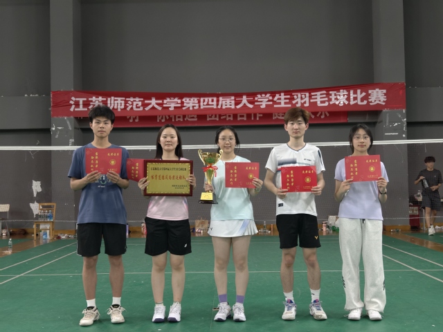 4月26日下午,由校体育运动委员会主办的江苏师范大学第四届大学生羽毛球竞赛在泉山校区羽毛球馆圆满落幕。敬文书院代表队在激烈角逐中脱颖而出,荣获混合团体比赛冠军和“体育道德风尚奖”。