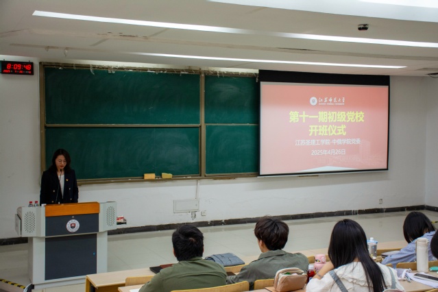 4月26日上午,江苏圣理工学院-中俄学院第十一期初级党校培训班开班仪式在泉山西教101阶教室顺利举行。开班仪式由学院党委副书记文雯主持,党委书记尹燕萍出席,学生党支部书记及新一批入党积极分子参加。开班仪式上,学院党务秘书、组织委员周燕宣读了《江苏圣理工学院-中俄学院2025年第十一期初级党校培训计划》,就培训的课程安排、学习要求、考核方式等方面进行解读。最后,文雯就此次党校培训的纪律要求作了强调。