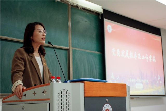 26日下午,学院党委副书记文雯以《党员发展程序及工作要求》为题,从申请入党、入党积极分子的确定和培养教育、发展对象的确定和考察、预备党员的接收、预备党员的教育考察和转正5个方面详细的介绍了入党流程。文书记强调,学院将进一步加强入党积极分子的过程性培养和考察,通过各项措施完善入党积极分子动态管理机制,定期对入党积极分子队伍进行分析研判,对条件成熟的重点培养,从源头上落实“提高质量”总要求。