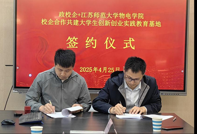 为进一步改进工作作风,解决学院师生反映比较强烈的工科集中实习缺乏接收单位资源、实习质量不高的难题,物电学院党委积极拓展外部资源,与江苏政校企集团经过多轮磋商,达成校企合作意向。4 月 25 日,双方正式签署合作协议。江苏政校企企业管理有限公司董事长马齐、总经理孟旺、人事经理李儒林,物电学院副院长石景明,副书记赵明,光学工程系主任韩彩芹教授,电子工程系主任赵波教授等老师出席签约仪式。
