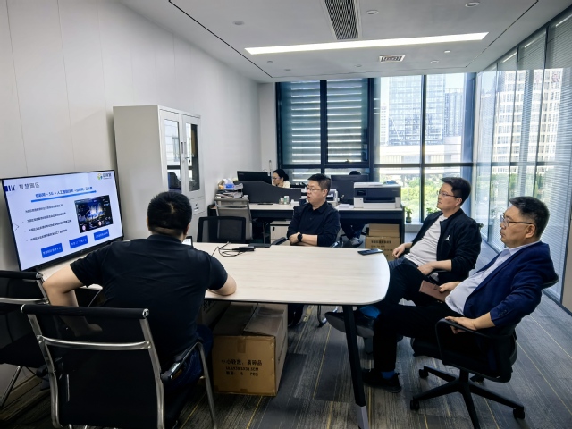 在朗高科技,院领导一行先后参观了5S智慧城市研究院、智能产线调试中心等核心区域,现场观摩企业工程师演示智能化集成系统、朗高5S智慧建筑管理平台、“远程故障诊断”等前沿技术,就深化产教融合、数智赋能就业等进行交流探讨。
