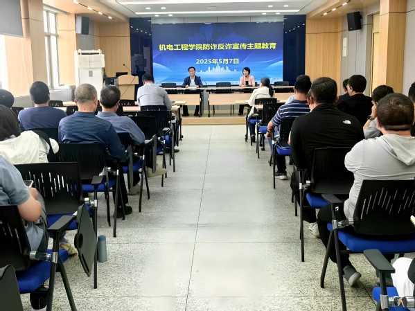 5月7日下午,机电工程学院开展防诈反诈宣传主题教育活动。学院全体教工参会,院党委何莉娜书记主持会议。