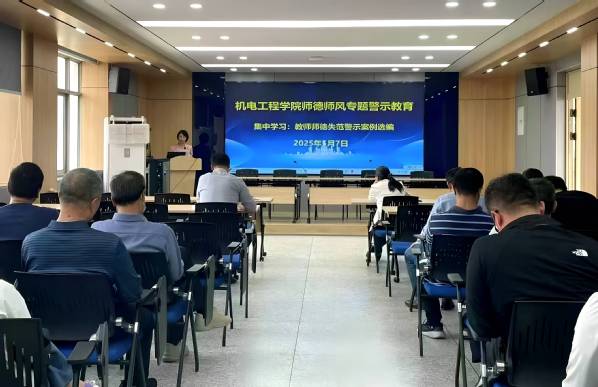 5月7日下午,机电工程学院召开全体教职工大会暨师德师风专题警示教育活动。学院全体教工参会,院党委何莉娜书记主持会议。