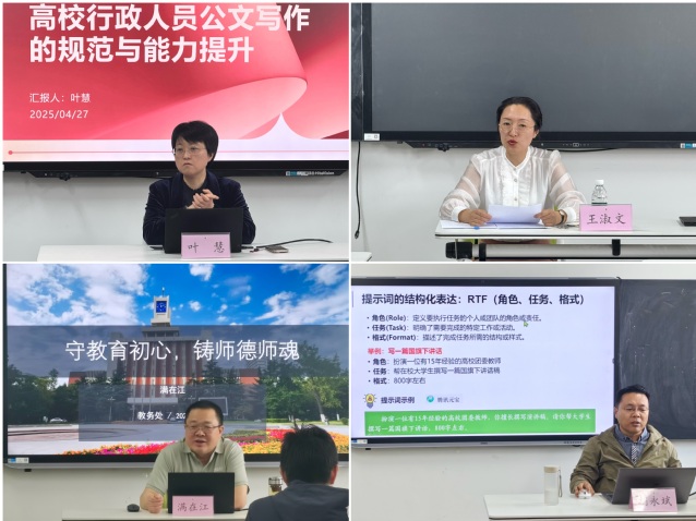 以业务发展提质增效,锻造专业内核。围绕“提业务能力、增服务效能”双目标,学院聚焦教学、管理等关键领域精准施策。校党委办公室副主任叶慧在 “高校行政人员公文写作的规范与能力提升” 讲座中,系统梳理公文种类、格式要求、常见错误及行文规则,通过典型案例解读“内容精准、结构清晰、语言凝练”的写作原则,为行政人员提供可复制的公文处理方法,有效提升了公文写作的规范性与专业性。校党委统战部副部长王淑文结合科级干部选拔任用与管理工作规定,从能力素质提升体系、职业发展路径等方面展开指导,提出“转变观念、精进本领、善思善为”的成长建议,并现场解答辅导员职业发展困惑。教务处副处长满在江以 “守教育初心,铸师德师魂” 为题,从教育使命、师德内涵、教学规范、师德挑战四方面切入,明确教学各环节规范,强调以数字素养提升应对新时代师德挑战,强化了教师严守教学规范、践行师德要求的行动自觉。三场培训紧贴岗位实务,提升教职工公文处理能力、职业规划能力与师德践行能力,实现行政服务效能提速、教学管理质量增效的双重突破。