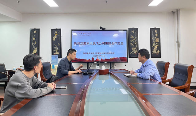 5月14日,科大讯飞江苏高教徐州负责人张永坤一行到访智慧教育学院(计算机科学与技术学院),就教育大模型研发与应用开展合作交流。院长董永权教授及相关专业教师参加座谈。