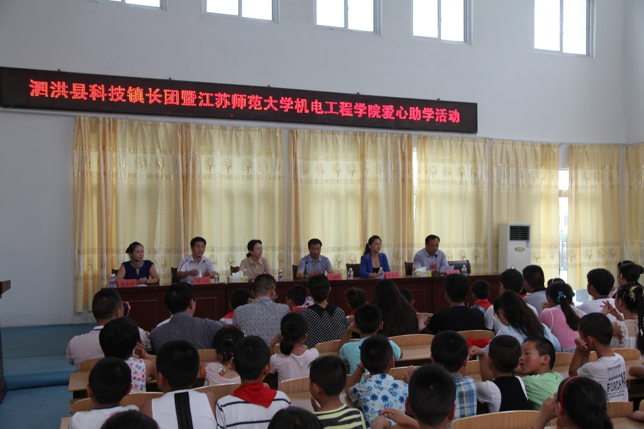 为引导大学生在社会实践活动中受教育、增才干、做贡献,激发他们勤奋学习、勇于创新、奋发成才的积极性和主动性。724日上午,机电工程学院暑期社会实践团一行16人,在学院党委梁书记的带领下赴宿迁市泗洪县开展了“科技产品接地气,放飞梦想走基层”爱心助学活动。