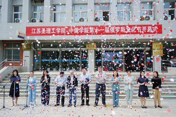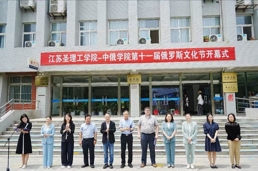 5月16日,江苏圣理工学院-中俄学院以“展文化交流魅力,谱中俄友谊新章”为主题的第十一届俄罗斯文化节在西教13#楼前广场隆重开幕。校党委常委、宣传部部长孟召学及俄罗斯圣彼得堡彼得大帝理工大学教师代表Евгений Александрович Попов副院长,教务处、国际合作交流处(国际学院)、后勤保障部、学生工作处、马克思主义学院等部门领导,江苏圣理工学院-中俄学院领导班子及两校师生代表共同出席活动。