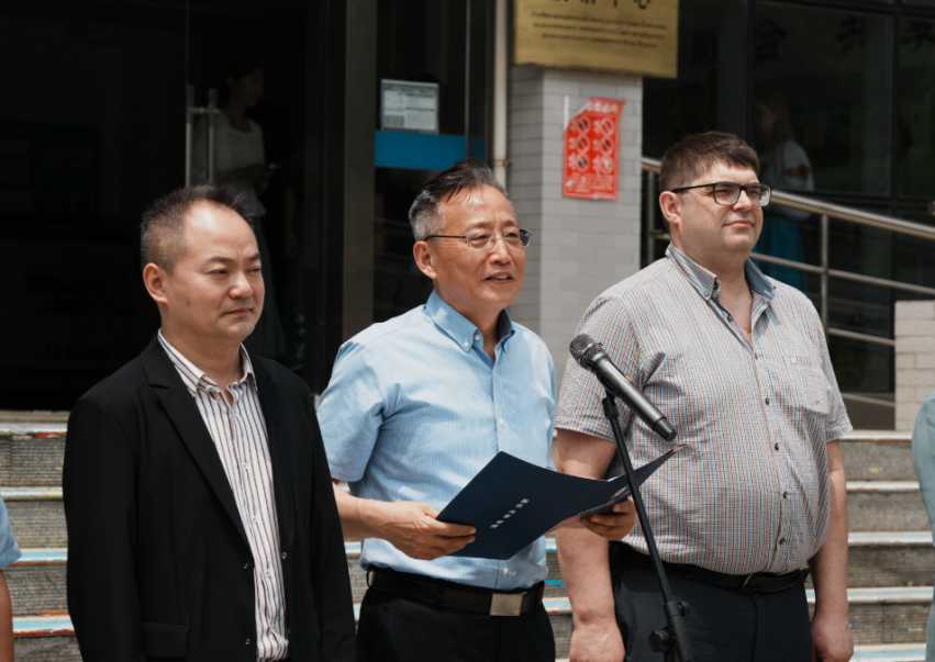 俄方代表Евгений Александрович Попов副院长在致辞中,首先以“三个历史性节点”为脉络,深情回顾两校合作历程。一是合作奠基,2014年签署合作协议,2016年成立中俄两国首家非独立法人合作办学机构。二是里程碑评价,2019年俄方120周年校庆,鲁茨科伊校长以“三个独一无二”盛赞我校办学成效。三是新时代深化,两周前董晓臣副校长率团访俄期间,双方不仅在教学等多方面达成进一步深化合作的共识,阿尔塞尼耶夫副校长再次以“中国高校国际合作典范”高度评价双方办学实践。