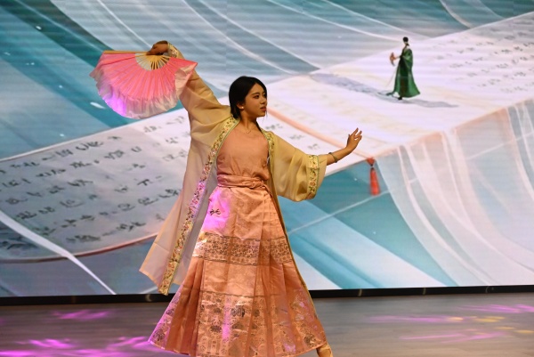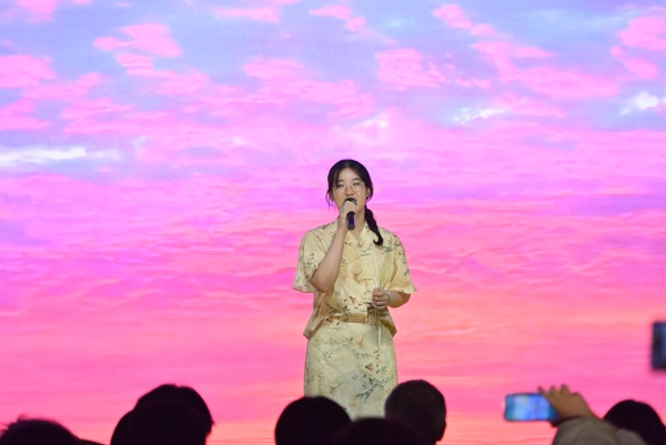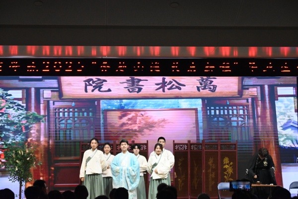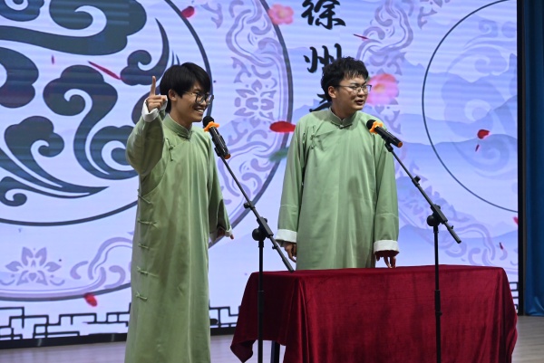 晚会在活力四射的表演《Teeth》中拉开帷幕,瞬间点燃现场气氛。随后,国际学生独唱《My heart will go on》以悠扬深情的旋律,带领观众沉浸于经典之中;相声《徐州之最》等节目则巧妙融入地方特色元素,赢得阵阵掌声。飞舞艺术团带来的《碇步桥》舞姿曼妙,民传学生的《武动青春》刚劲有力,雷雨剧社的《万松书院》演绎精彩,展现出同学们的多才多艺。辅导员李雪晴老师和樊宏老师带来的歌曲更是为晚会增添了别样风采。学院师生精心录制的祝福视频和毕业纪念视频引起全场师生的共鸣。最后,校青年合唱团带来的歌曲《世界赠予我的》为晚会画上圆满句号。同学们用歌声、舞姿和表演,诉说着对校园的眷恋、对同窗的不舍以及对未来的憧憬。
