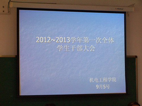学期伊始,为强化日常管理,帮助同学们调整学习状态,9月5日下午2:30,我院在工学院101C召开2012-2013学年第一次全体学生干部大会。除了学生干部,与会的还有我院于书记、杨翠老师、朱悦老师和项楠老师。