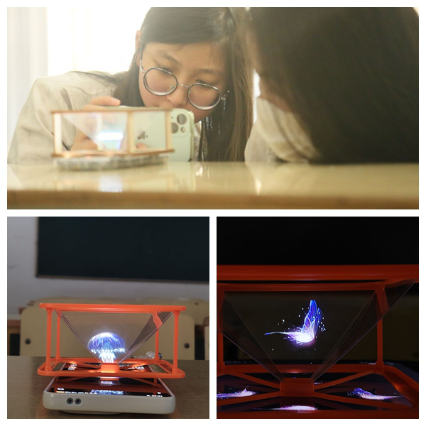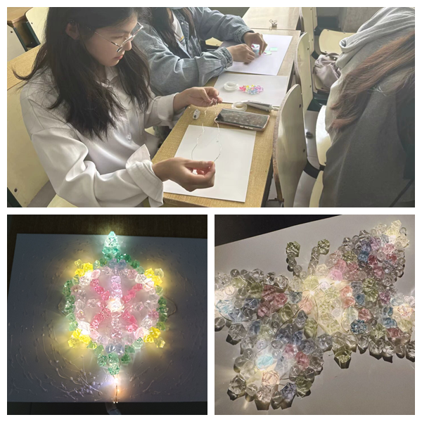 活动设置了三个创意手工体验区。“全息投影互动体验”区,同学们在工作人员指导下学习全息成像原理,亲手制作全息影像作品;“LED灯带爱心水晶灯制作”区,同学们用LED灯带和仿真水晶石创作出璀璨的灯光作品;“亚克力透光画创作”区,同学们以透明板材为画布,在透明画板上挥洒创意,绘制出层次分明的光影图案。