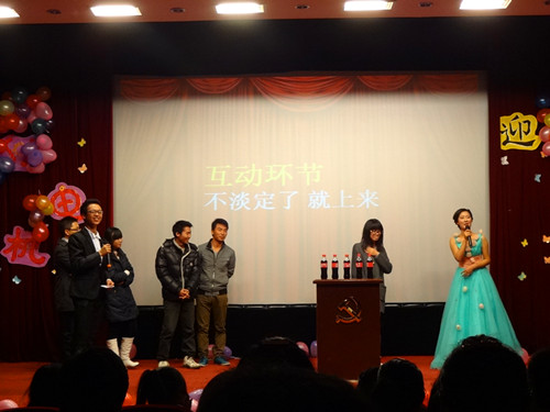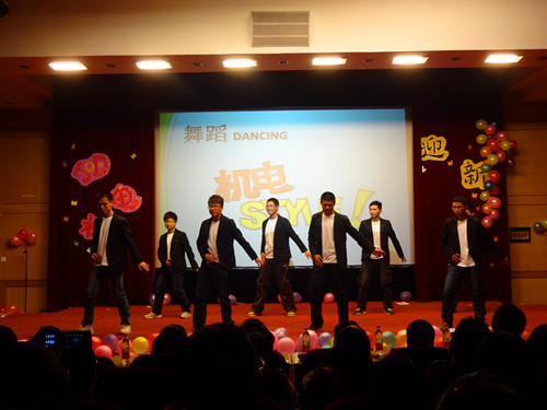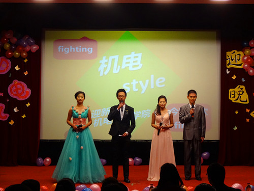 伴着悠扬的音乐,同学们迎来的是《女子爵士》舞蹈。四个女孩子成熟、熟练的动作,引起台下阵阵掌声。而后上台的是大二学长许文豪,他为大家带来了精彩的机械舞。那些颇有难度的动作在他的身上表现的游刃有余,台下同学们不禁高呼呐喊。舞蹈结束,掌声未息,四位主持人走上了舞台。黑色的西装,粉色的衣裙,不禁让场上光鲜闪亮。伴着主持人宣布的“迎新晚会正式开始”,台下涌动起青春的活力,掌声贯耳,荧光棒滑动着优美的痕迹。如果说《女子爵士》舞蹈带给观众们的是成熟火爆,那么《咏春》舞蹈带给观众们的便是高丽素雅。六位女生素雅的着装,优美的舞姿,和着轻扬的旋律,为观众带来一场视觉的盛宴。当然,别样风格的男生舞蹈《机电style》更是将现代与古典相结合,让同学们直呼过瘾。要说欢笑,那么话剧《项羽外传》便站在了晚会的最前沿。剧中幽默的台词、精彩的反串都让现场爆发出了阵阵欢呼。而引用电视原版节目,加入搞笑歌唱的《好声音》则已不同风格的歌声为大家送来欢乐。由古典爱情故事改编的《梁祝》台词犀利,演员表演生动,其出人意料的剧情将晚会带入高潮。在这些精彩的话剧中,不是穿插着机电学子的动人歌声。学长田陈阳的动人歌声《只为你唱》、黄冉等新生带来的歌曲串烧、周伟等同学的合唱以及乐器演奏《绿光》都为我院迎新晚会留下了绚丽的一抹。除了精彩的演出,晚会中喝可乐、礼品大派送等互动节目也让同学们尖叫连连。