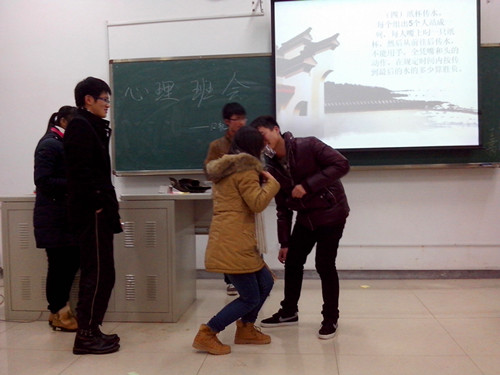 首先,同学们依次讲述了自己对“朋友”的定义以及当自己面对朋友间发生冲突时的做法。不少同学的想法十分有趣,他们对“朋友”的理解十分深刻。随后,心理委员组织大家玩起了游戏。游戏主要包括传悄悄话、合作竞技和纸杯传水。其中,最精彩的莫过于纸杯传水了。主持人一声令下,同学们立马行动起来,用嘴巴将纸杯中的水传递至下一位同学口中的杯子里,一个接一个。有的同学配合默契,有的则稍逊一筹。游戏结束时,同学们纷纷为彼此擦去脸颊上的水珠,嘴角扬起的满是幸福的微笑。