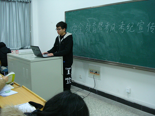 为了响应学校的号召,增强我班学生的安全教育意识,进一步提升同学们的安全教育水平,12机41班于12月26日晚7点于工学院303C召开了安全教育暨考风考纪宣传班会。此次班会由班长惠梦浩主持。