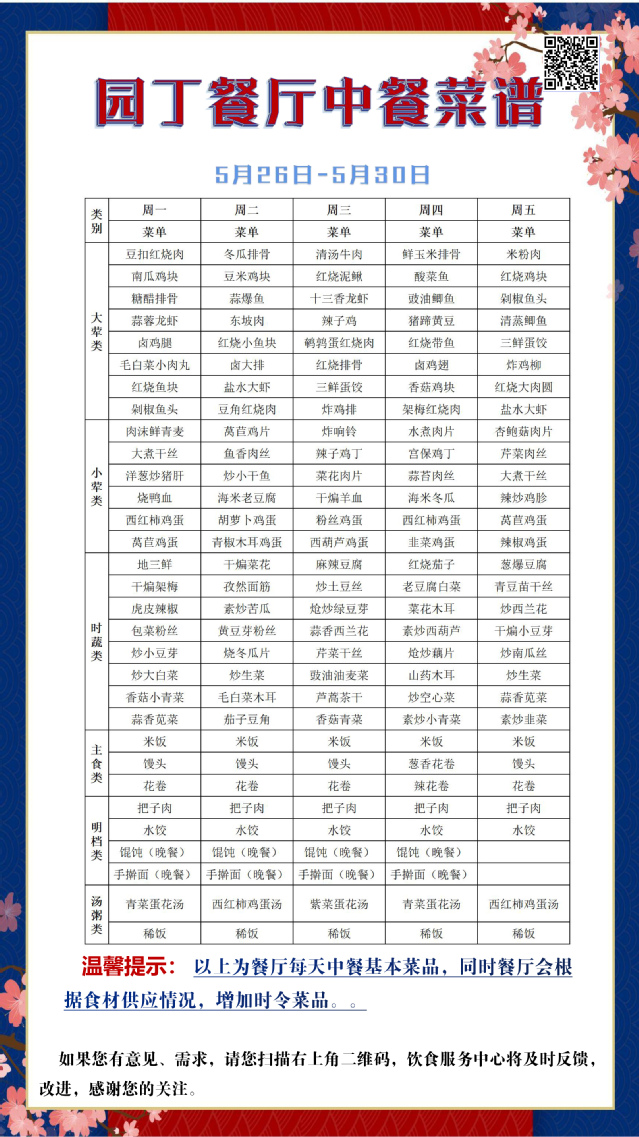 根据大数据分析,餐厅11:25-11:35、11:45-11:50、12:00-12:05三个时间段为就餐高峰期,为了减少排队等待时间,老师们可以选择错峰就餐。餐厅所有食材当天购买、当天使用,菜品新鲜,安全卫生。