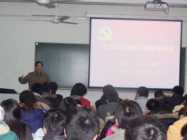 11月19日下午4:30,机电工程学院第四期业余党校第二讲“党的最高纲领与现阶段任务”在工科大楼507A开课。校党委宣传部王晓三部长主讲。